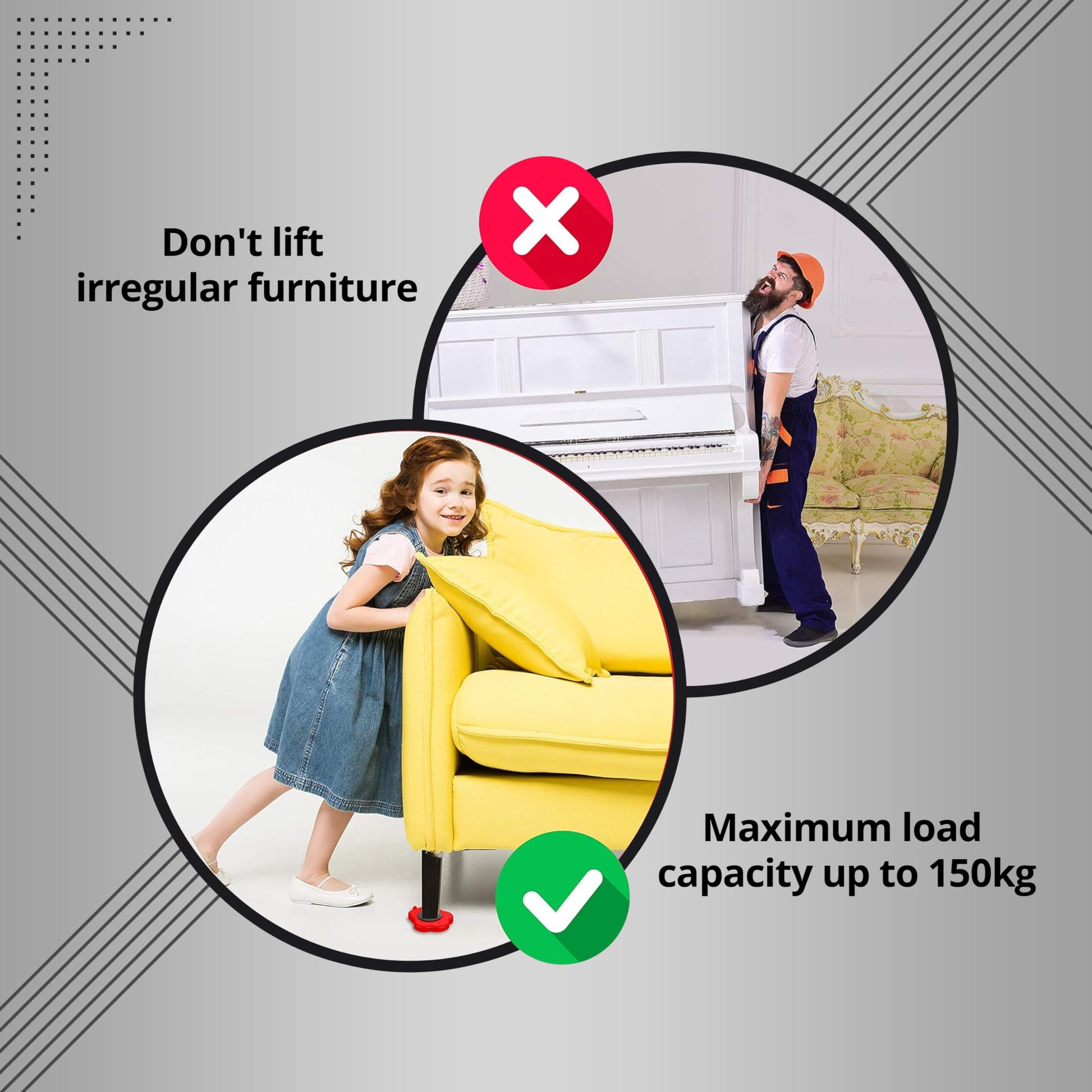- Load Capacity: The Furniture Lifter and Mover is capable of handling weights up to 150 KG / 330 pounds, making it effortless to move furniture and heavy objects with ease.